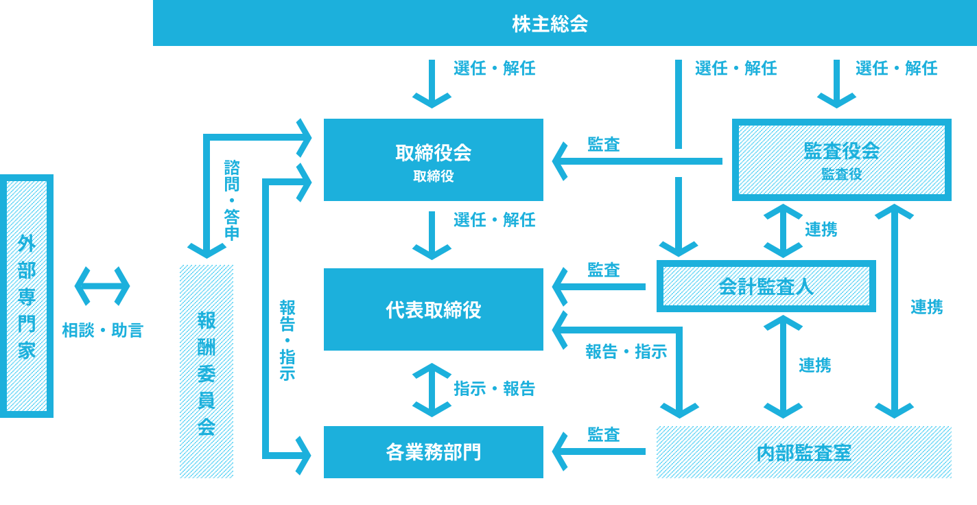 当社のコーポレート・ガバナンスの体制図は以下の通りとなります。